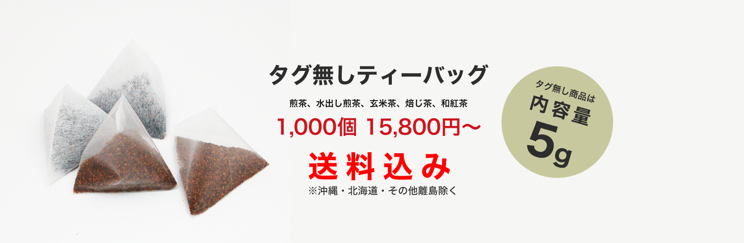 タグの付いていないティーバッグ商品は、タグ有りに比べ倍の茶葉が入っています。